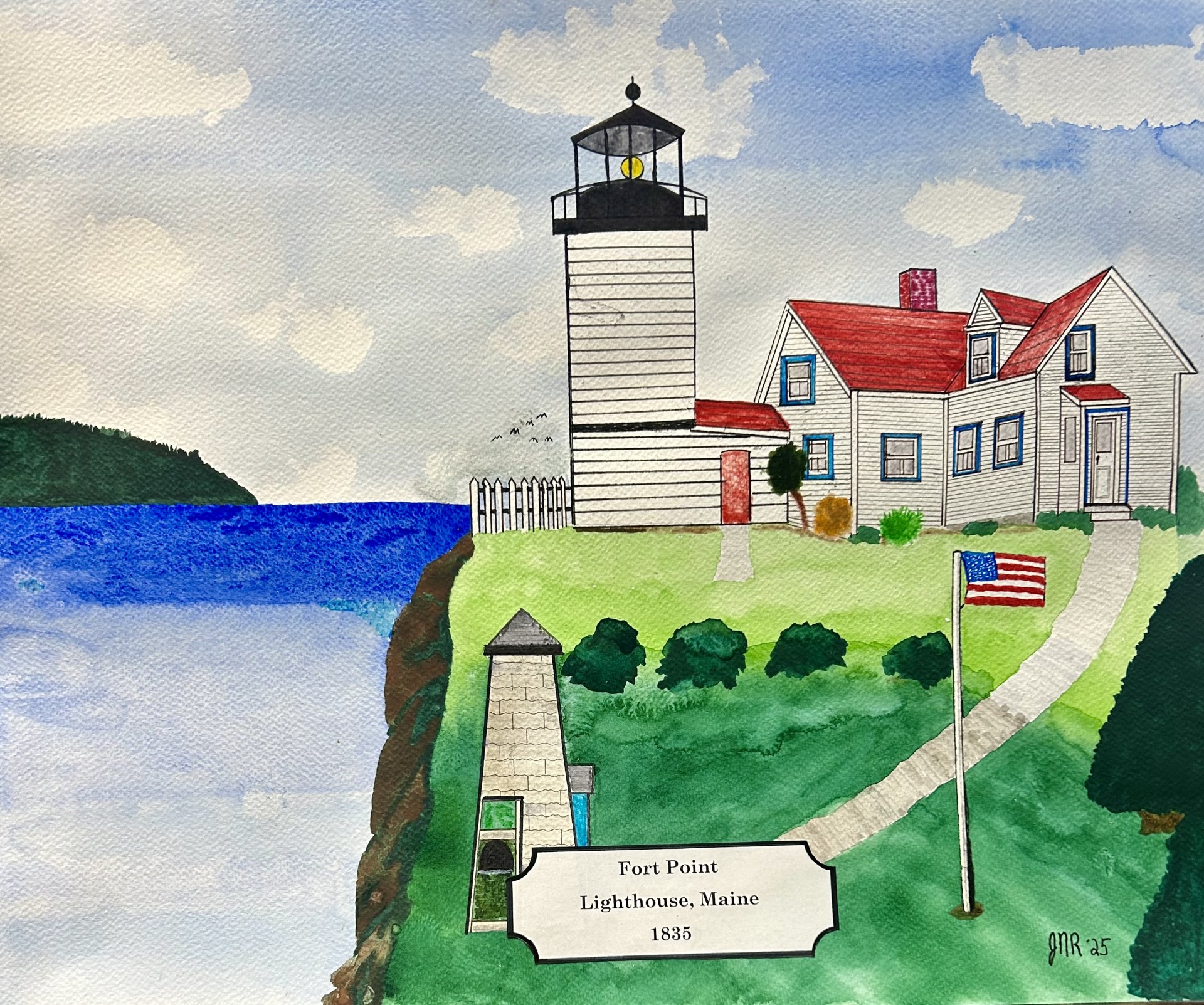 I paint everything by hand using watercolor, pen and ink, and oils. I take my time with each piece and focus on the details that make a house feel familiar.